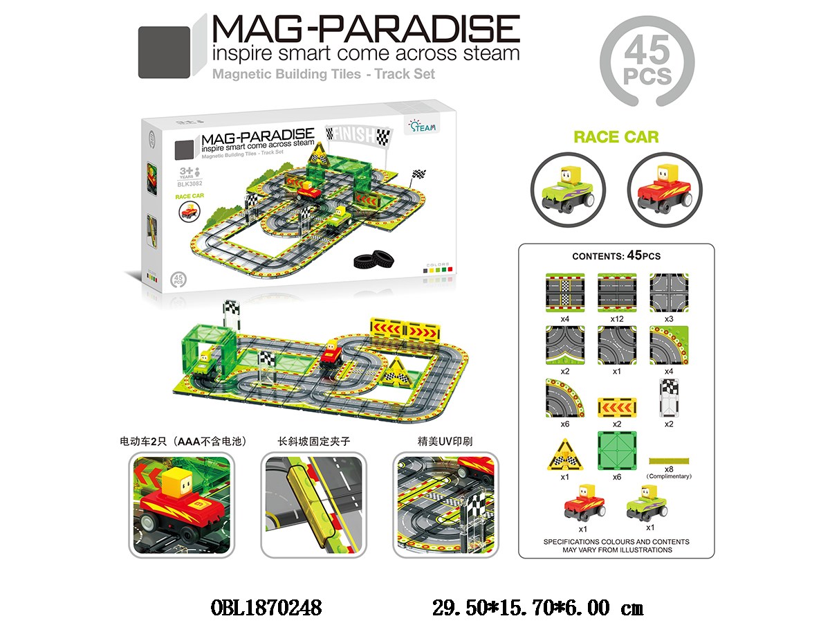 益智磁力片积木 迷你轨道-双车赛车 45PCS 电动车2只 各1*AAA不包电