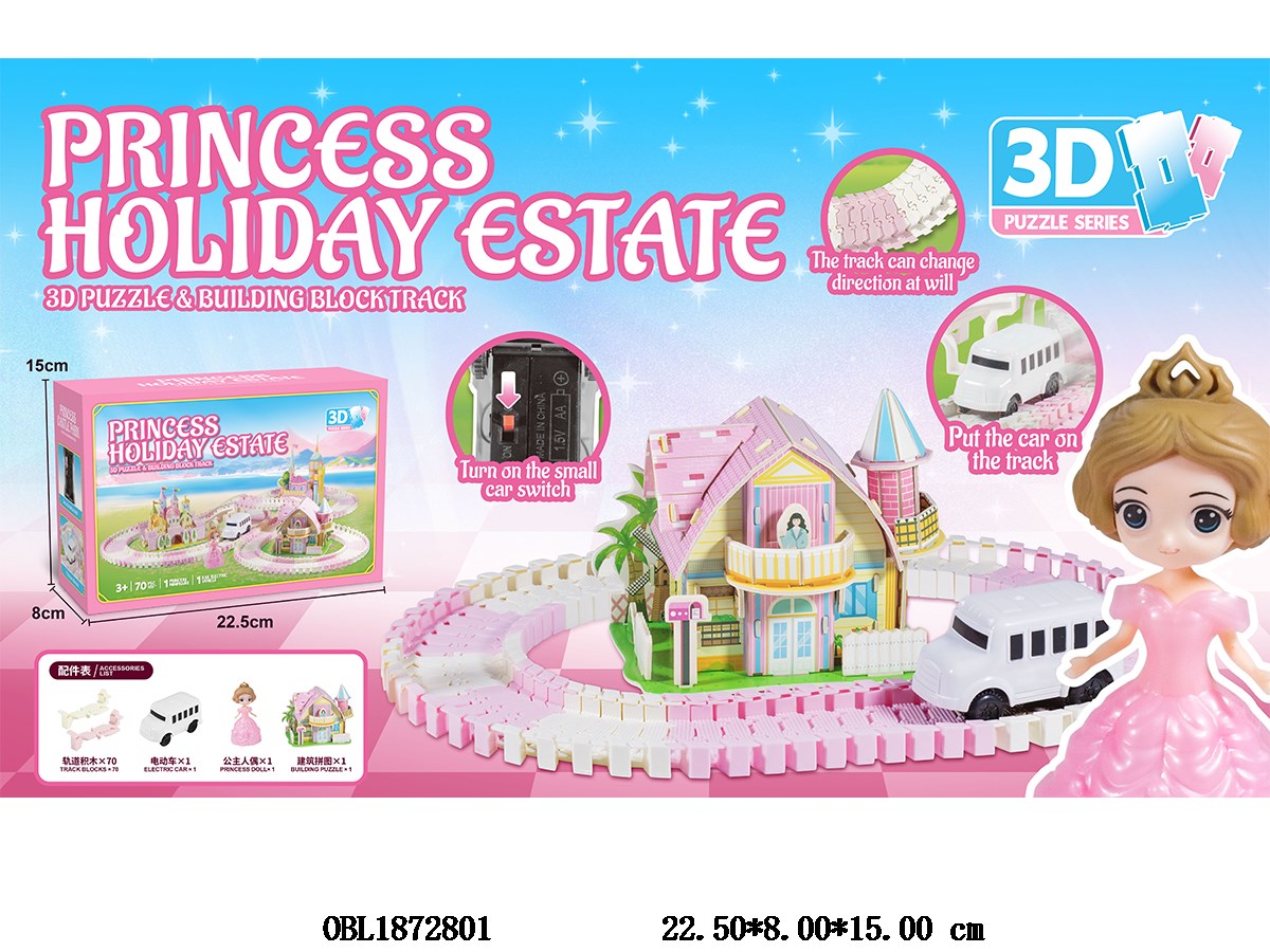 电动轨道车城堡拼图套装 1*AA不包电 配一只公仔