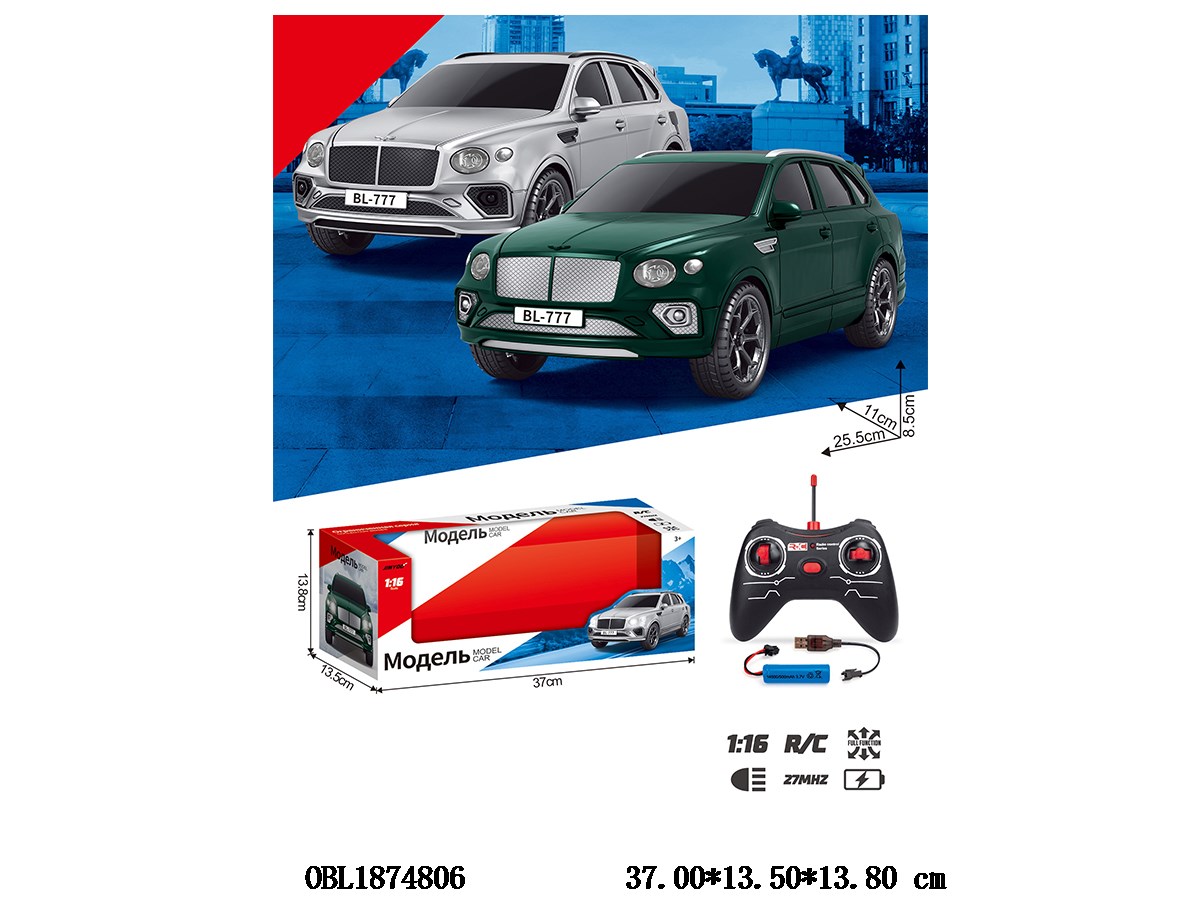 俄文1:12遥控车带灯光配USB线 车身3.7V锂电池包电 遥控器2*AA不包电 2色混装 27频率