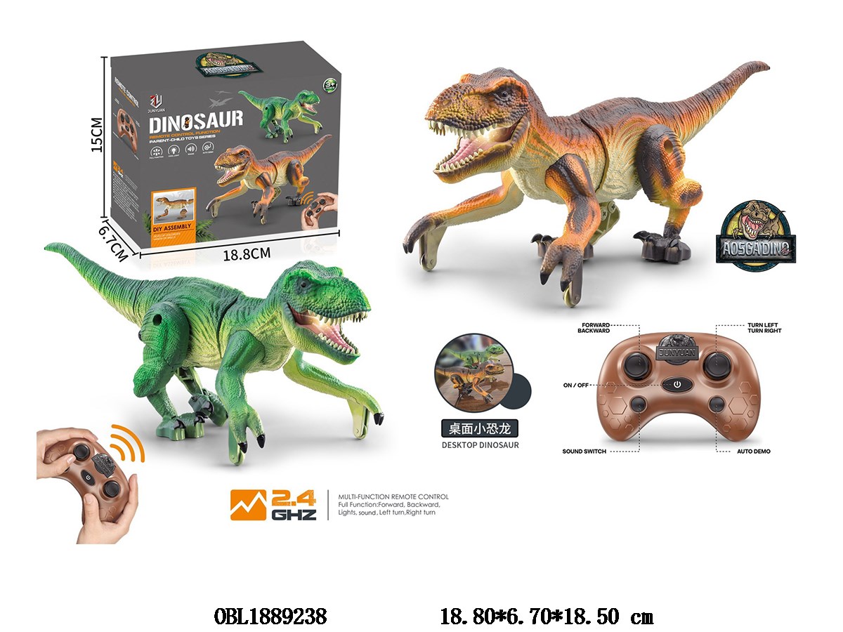 首页 > 遥控动物 > 桌面遥控霸王龙带灯光声音 配USB线 身体3.7V锂电池包电 遥控器2*AA不包电 2.4G频率 2色混装