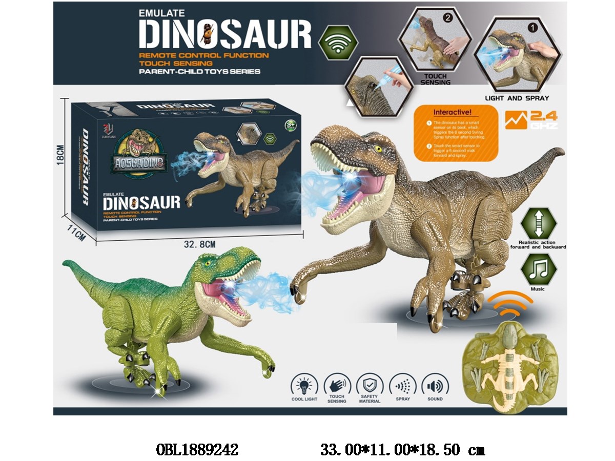 首页 > 遥控动物 > 遥控霸王龙带灯光声音喷雾 配USB线 身体3.7V锂电池包电 遥控器2*AA不包电 2.4G频率 2色混装
