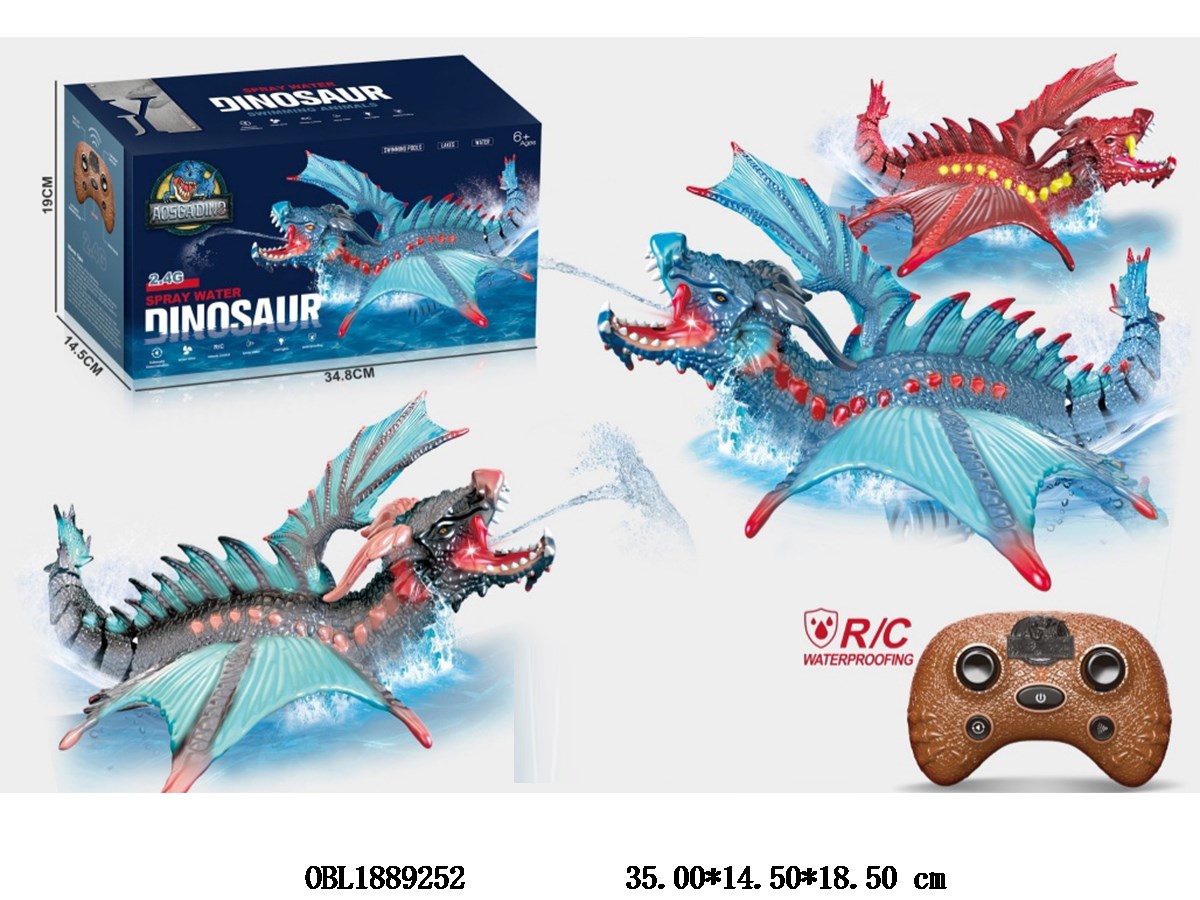 首页 > 遥控动物 > 遥控潜水恐龙带灯光喷水 配USB线 身体3.7V锂电池包电 遥控器2*AA不包电 2.4G频率 多色混装