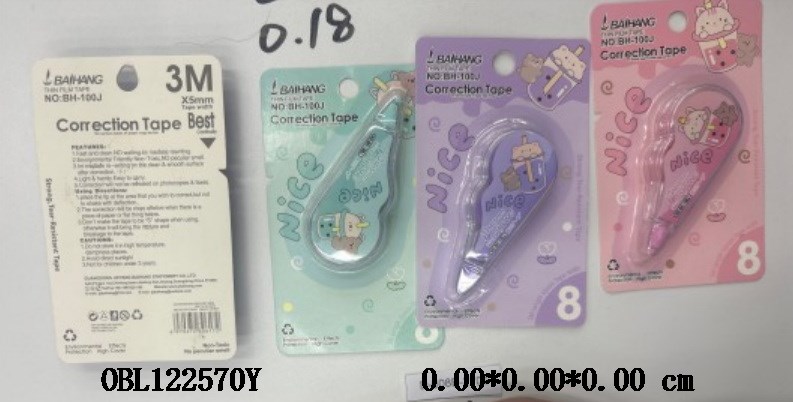 首页 > 学习用品 > 文具用品 修正带 4色混 3M*5MM 6.6*3*1.6cm 48/中盒