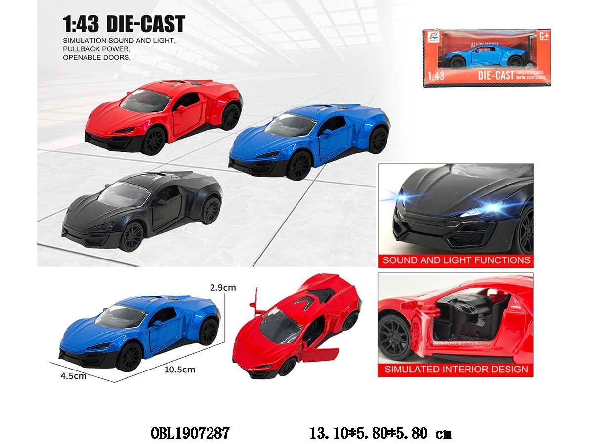 1:43合金回力开门车带灯光声音 3*AG3包电 3色混装
