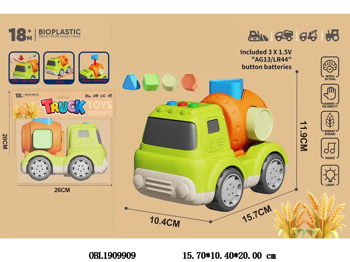 麦秆料积木配对滑行积木配对搅拌车 带灯光音乐 3*AG13包电