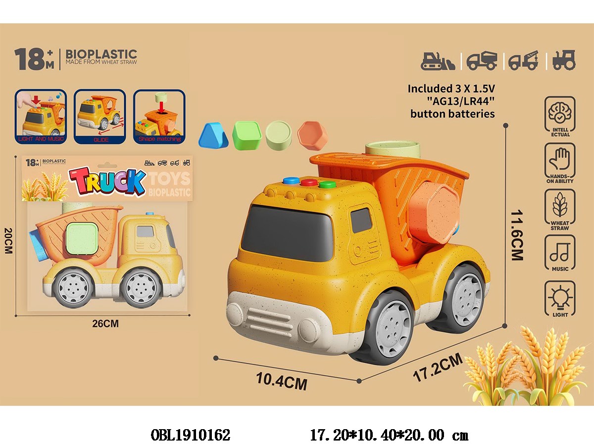 麦秆料滑行积木配对翻斗车 带灯光音乐 3*AG13包电