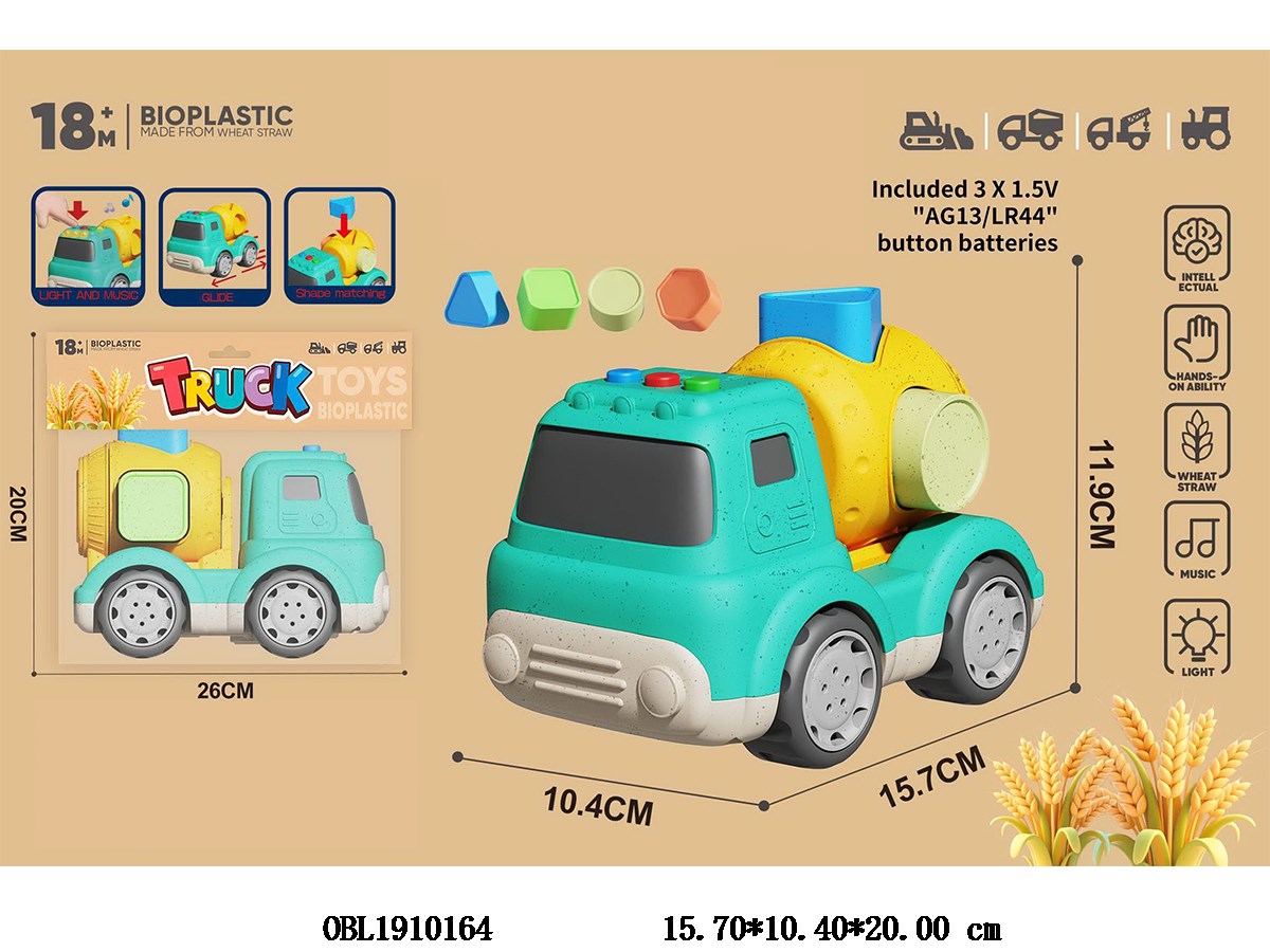 麦秆料积木配对滑行搅拌车 带灯光音乐 3*AG13包电