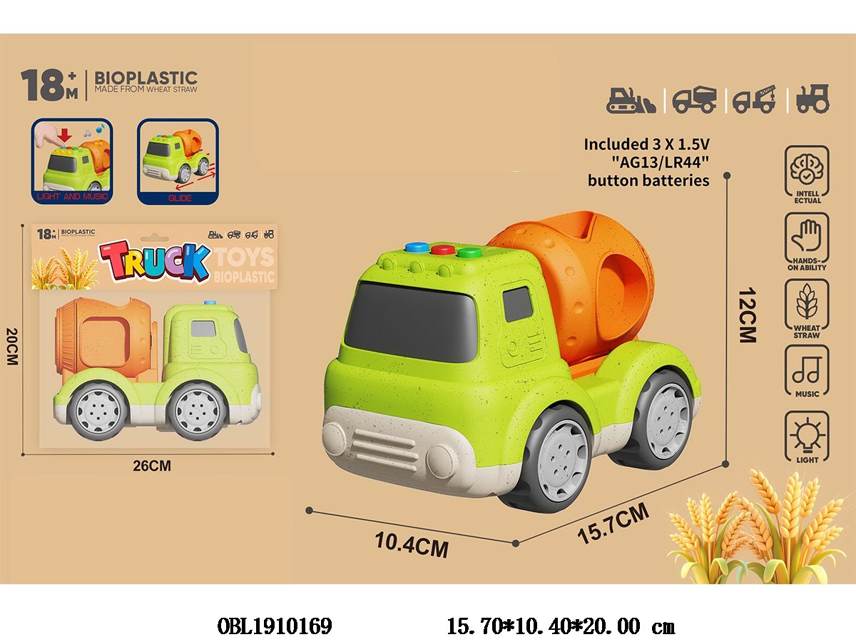麦秆料工程滑行搅拌车 带灯光音乐 3*AG13包电
