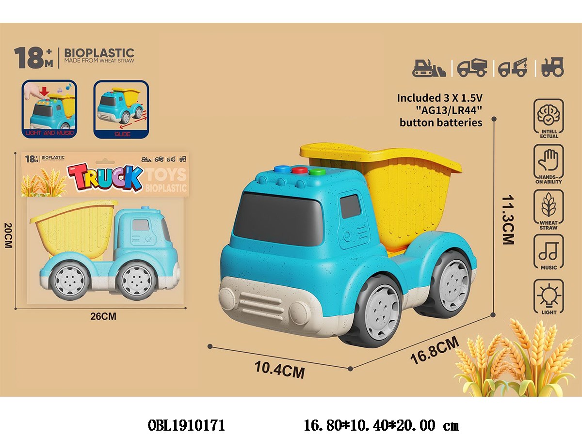 麦秆料工程滑行翻斗车 带灯光音乐 3*AG13包电
