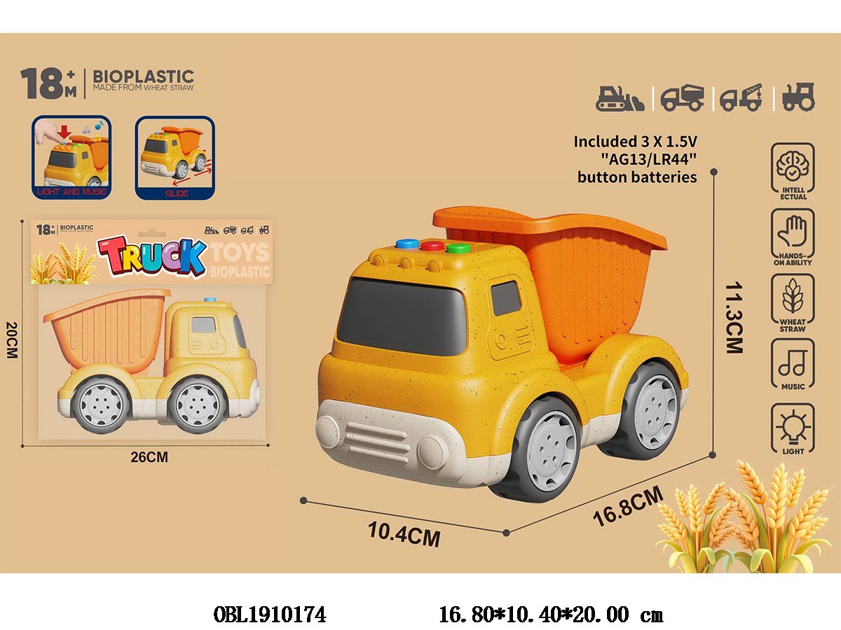 麦秆料工程滑行翻斗车 带灯光音乐 3*AG13包电