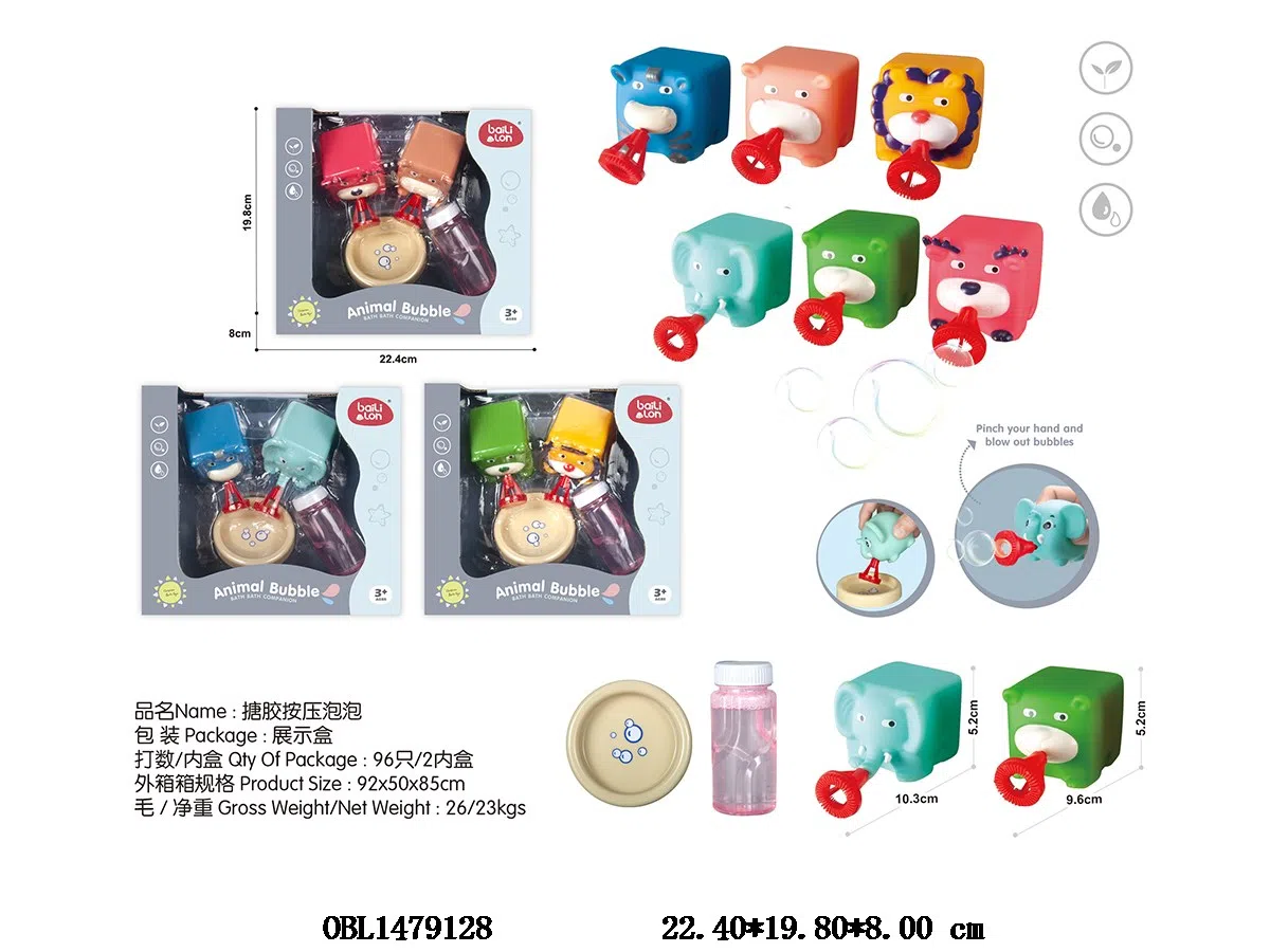 2 Zhuang enamel bubble animal suits with 1 bottle of bubble water