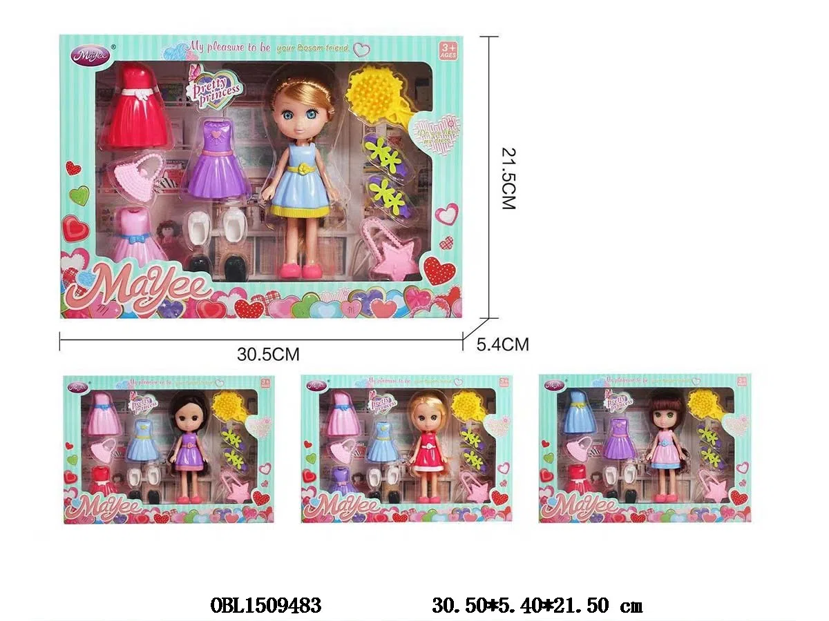 Home > Barbie Dolls & Barbie Sets > 6-inch solid body Bapyrene set with eye drops, main body clothing, 1 color, 4 mixed clothing