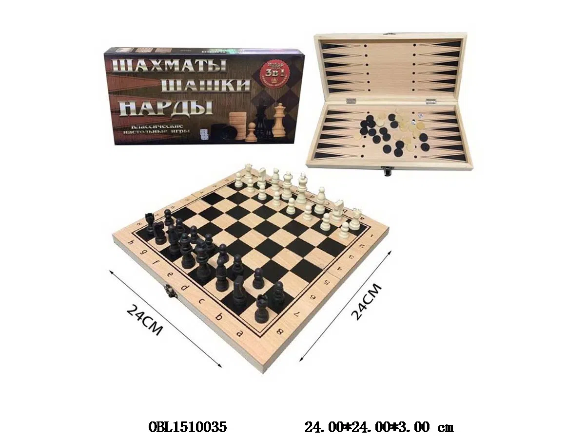 Wooden Three in One Chess