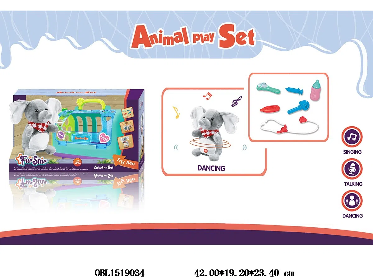 Home > Plush Toys > Plush Elephant Medical Set with Music, Learning to Speak, Dancing 3 * AAA Power Pack