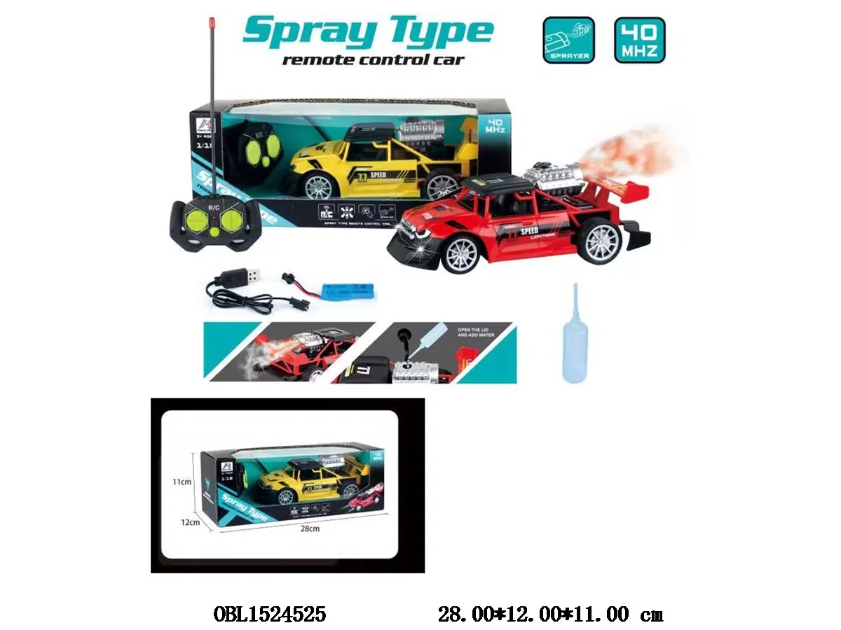 1: 18 Five way spray remote control car with light, USB cable, body 3.7V electric remote control, 2 * AA non electric remote control, 40 frequency, 2-color mixed installation