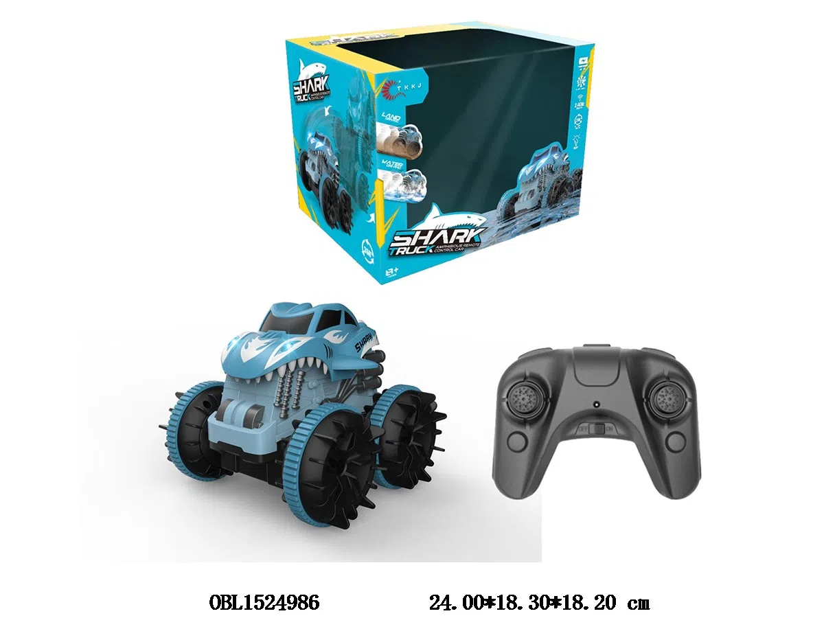 4-way amphibious shark stunt vehicle with lighting and USB cable body 3.7V lithium battery pack remote control 2 * AA no pack 2.4G