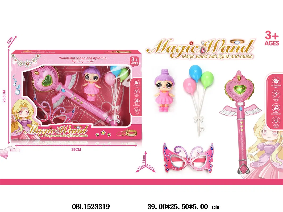 Magic wand with light and music paired with 11cm doll 3 * AA non electric 2-color mixed outfit