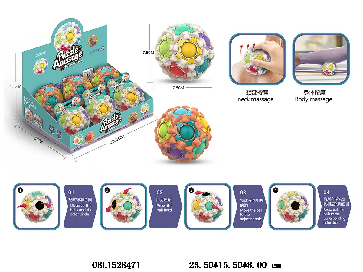 Puzzle color discrimination fingertip pressure reducing ball, 2-color mixed pack of 6 pieces, 1 display box, solid color version