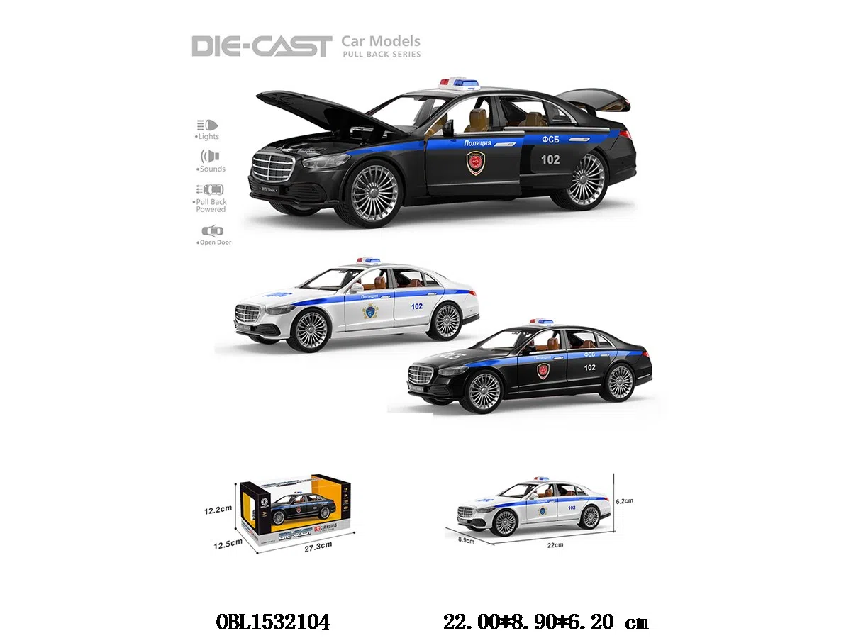 Home > Pull Back Toys > Russian version 1:22 six door return police car with lighting and music 3 * AG13 battery pack