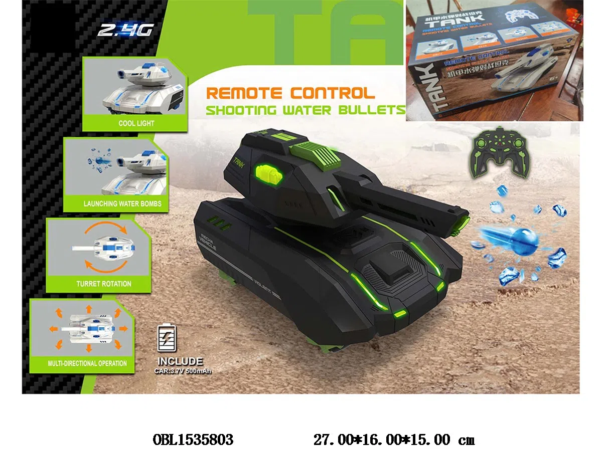 Home > R/C Car > Chinese version 11 Water Bomb shooting remote control tank car with lighting, music, and USB cable body 3.7V electric remote control 2 * AA no electric 2.4G