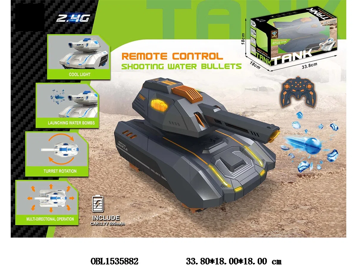 Home > R/C Car > 11 Water Bomb Shooting Remote Control Tank Car with Light and Music Equipped with USB Cable Body 3.7V Power Pack Remote Control 2 * AA No Power Pack 2.4G
