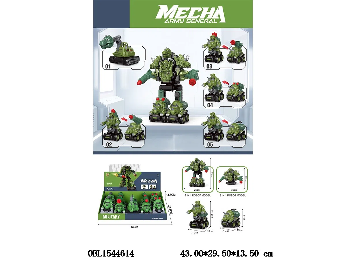 Home > F/P Car > Dual Inertia Dinosaur Military Vehicle can collide and deform 5 pieces, 1 display box, 5 mixed packs, and can fit together