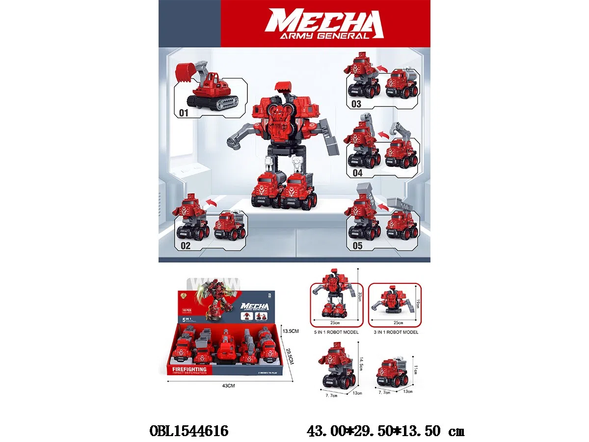 Dual inertia fire trucks can collide and deform, with 5 pieces packed in 1 display box and 5 mixed packs that can be combined