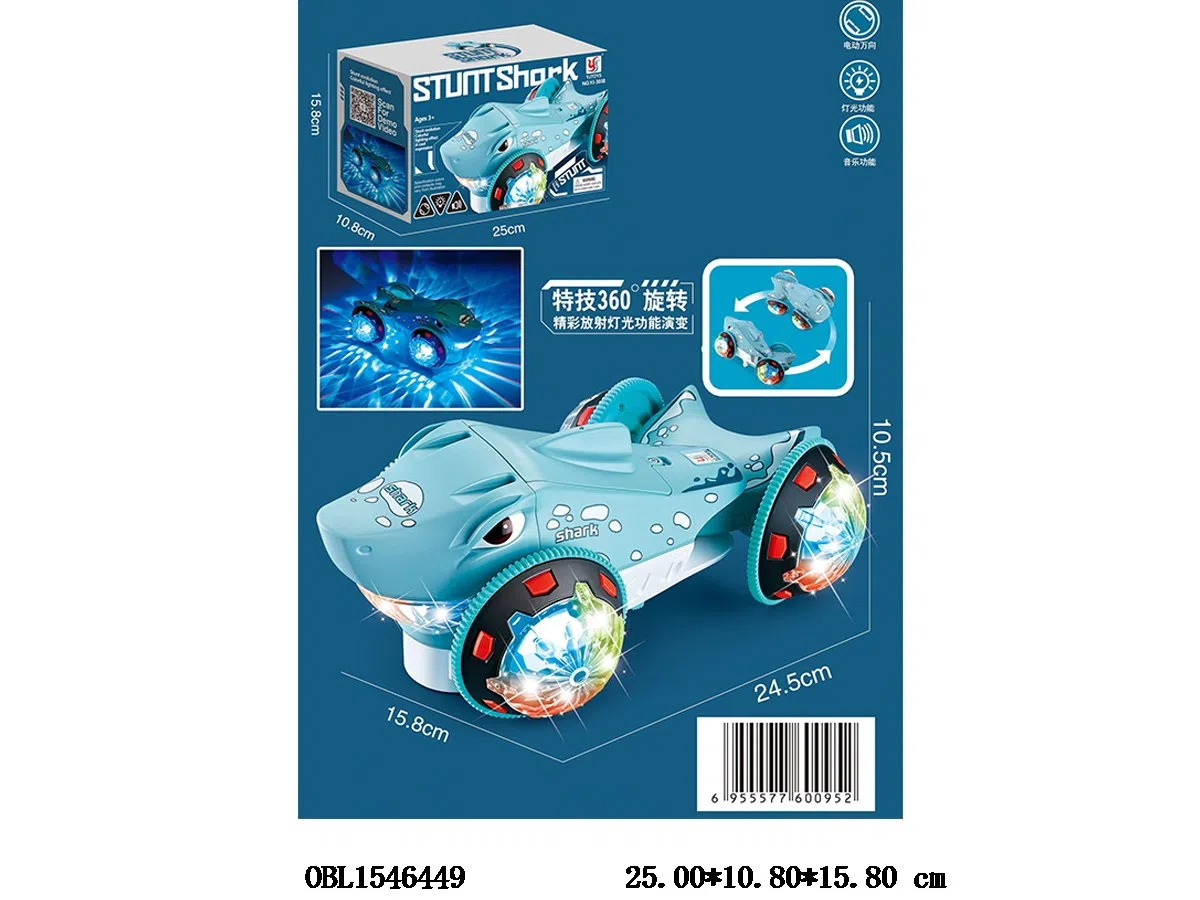Electric universal stunt shark with light music 3 * AA without battery pack