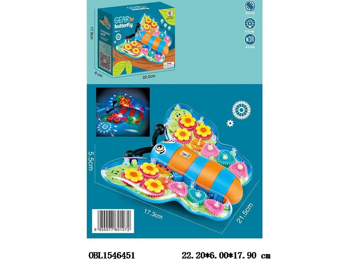 Home > B/O Animal > Electric universal transparent gear butterfly with light music 3 * AA without battery pack