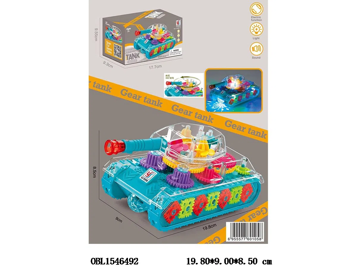 Home > B/O Tank > Electric universal gear transparent tank with light music 3 * AA without battery pack
