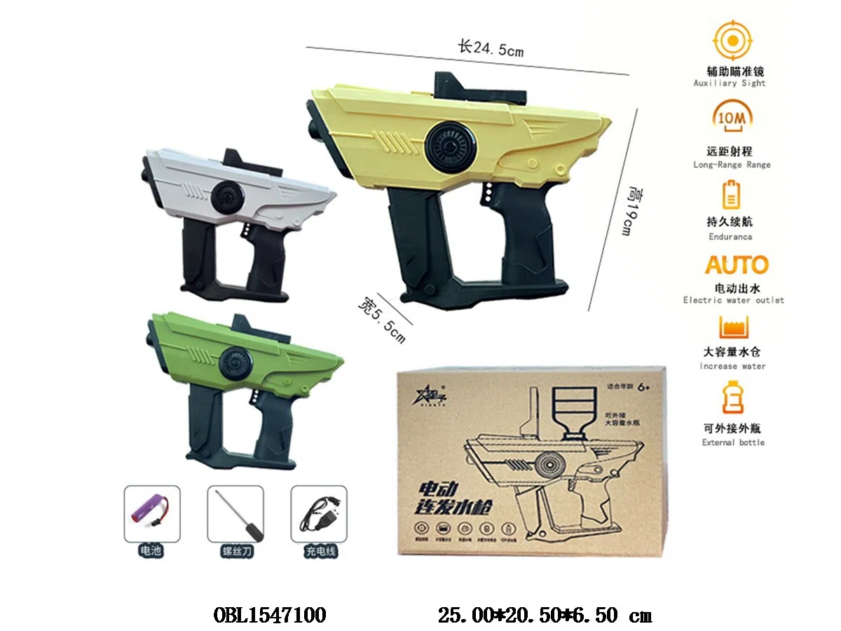 Chinese version dual head electric water gun with USB charging cable 3.7V lithium battery pack, 3-color mixed installation