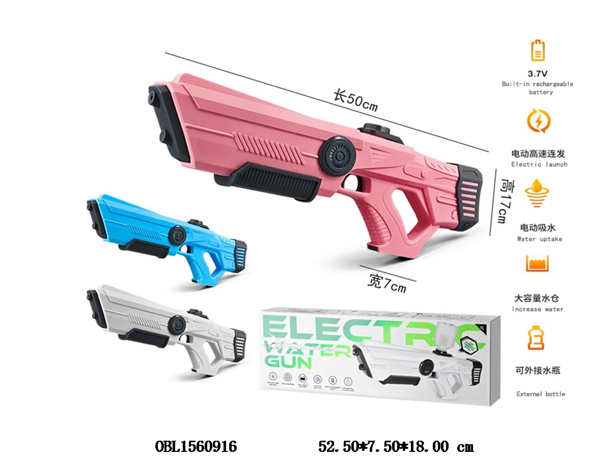 Electric water gun with self priming and USB charging cable 3.7V lithium battery pack, 3-color mixed installation