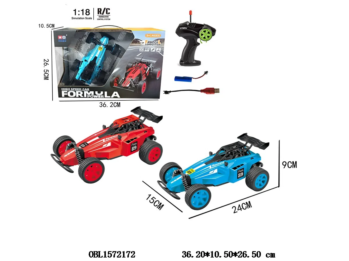 1: 18 four-way remote control high-speed car with USB cable body 3.7V lithium battery pack remote control 2 * AA no pack 27 frequency 2-color mixed installation