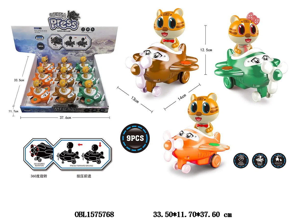Home > Pressing Power Plane > Cute Tiger Press Walking Aircraft 3-color Mixed Pack of 9 pieces and 1 display box
