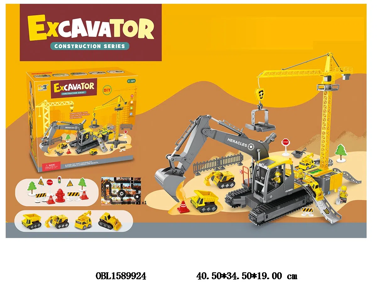 Home > F/P Car > Two in one storage and deformation inertia excavator track parking lot set with lighting and sound, equipped with 4 alloy engineering vehicles, 3 * AA, without battery pack