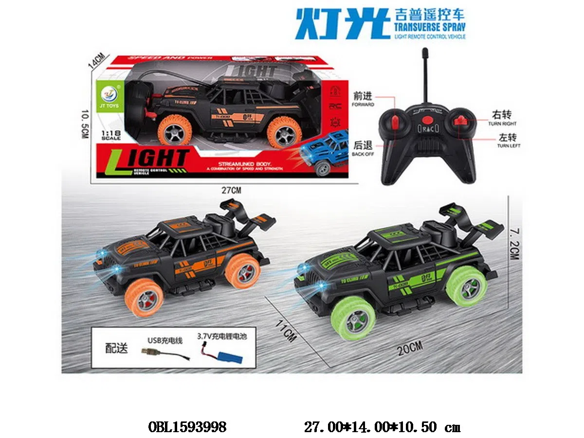 4-way remote control car with lighting and USB cable body 3.7V lithium battery pack power remote control 2 * AA no pack power 27 frequency 2-color mixed installation