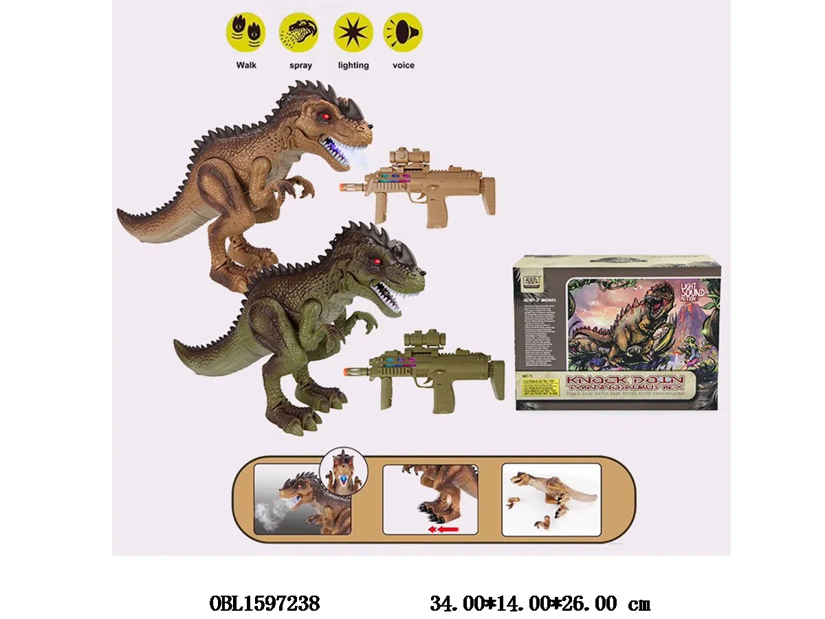 Home > B/O Animal > Electric dinosaur with light, music, spray, pistol, dinosaur, 4 * AA battery, no electric pistol, * 2AA battery, no electric pistol, two color mixed package