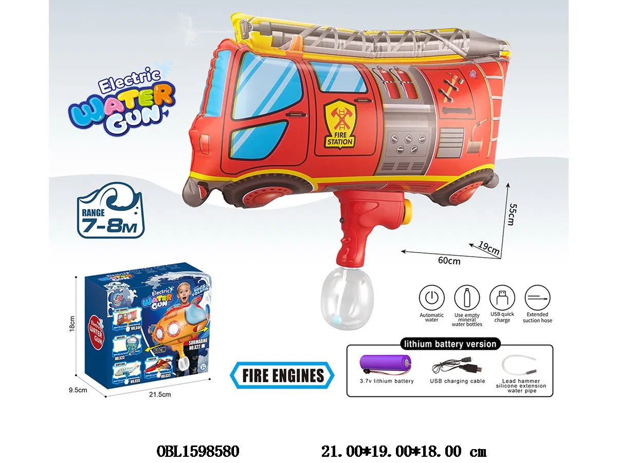 Fire truck inflatable electric water gun set with USB cable, fully waterproof, energy-saving, 3.7V lithium battery pack, 3.7V lithium version, 450ML capacity