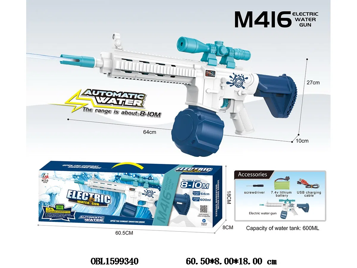 Home > Water Gun > Electric water gun set with USB cable 7.4V lithium battery pack 600 milliliters, range 8-10 meters