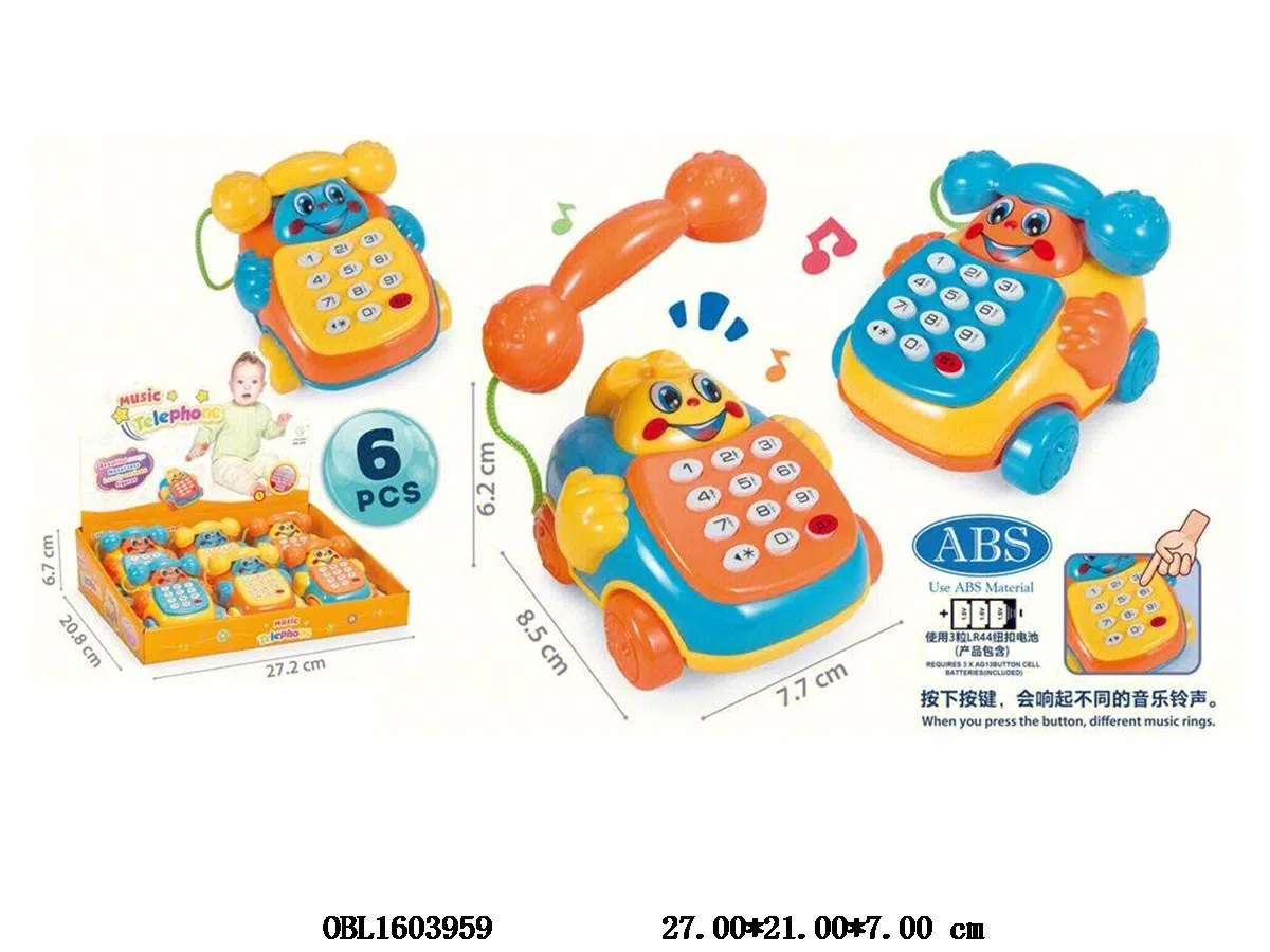 Telephone with music 3 * LR44, pack 6 batteries and 1 display box