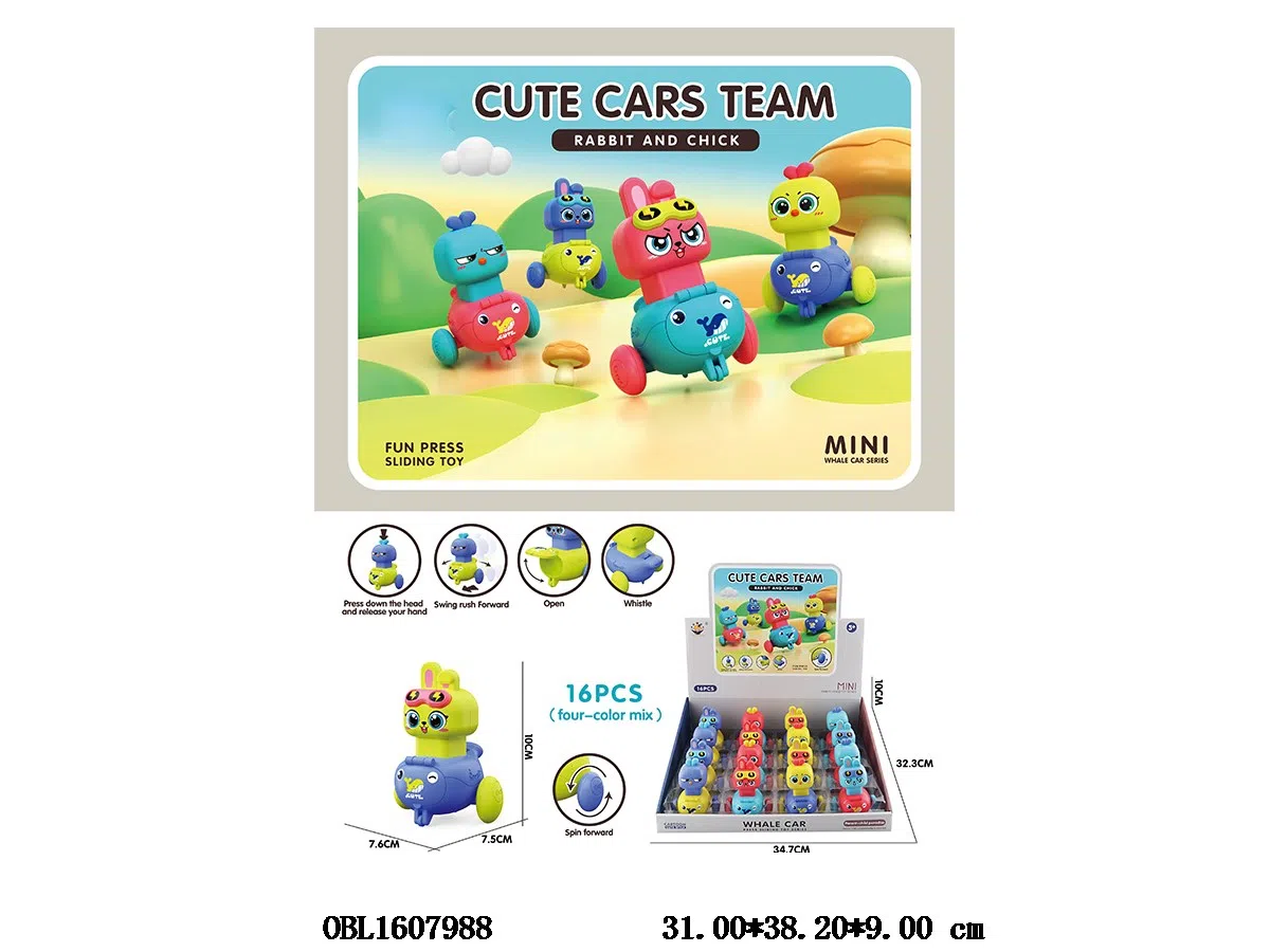 Pressing, sliding, swaying, cute whale, rabbit, and chick, 2 4-color mixed packs of 16 pieces, 1 display box, open flap for storing snacks/tail whistle design