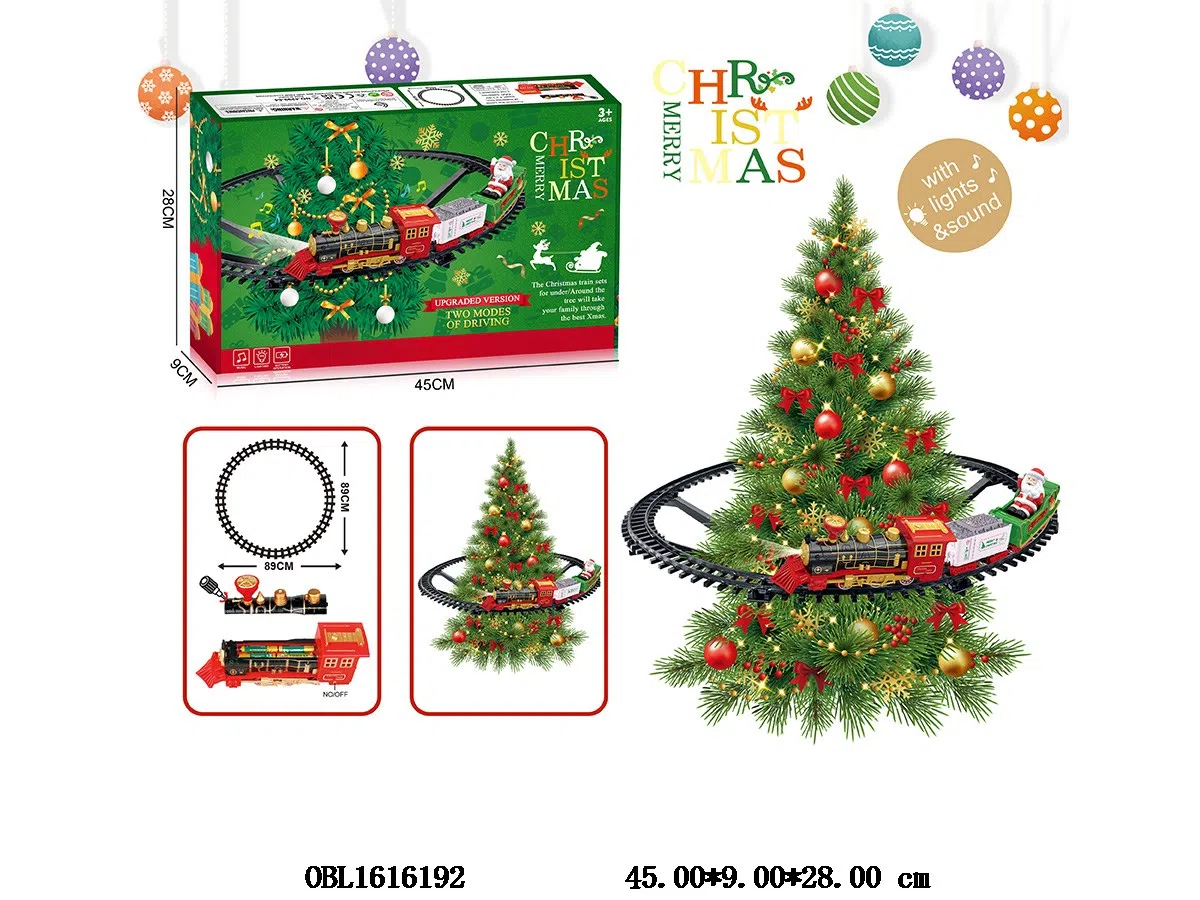 Home > B/O Railcar > Electric suspension Christmas tree track train set with light and sound, 4 * AAA without battery pack