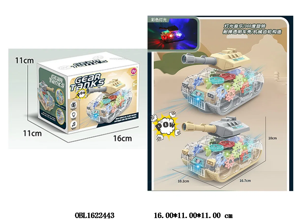 Home > B/O Tank > Electric universal transparent gear tank with light and music 3 * AA without battery pack