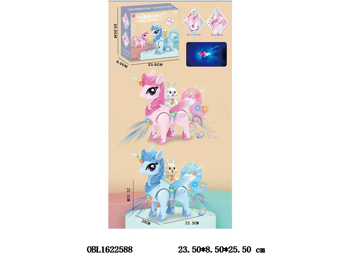 Electric unicorn sitting rabbit with light and music, 3 * AA, no battery pack, 2-color mixed package