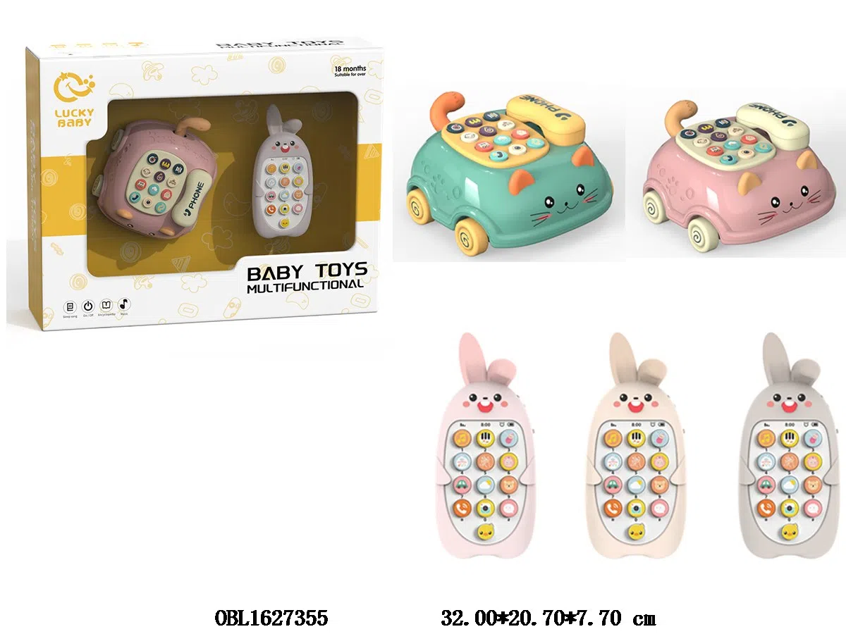 Cable telephone car with lighting and music, multi-functional mobile phone with lighting and music, 2 * AA phone car without battery, 2 * AAA phone without battery