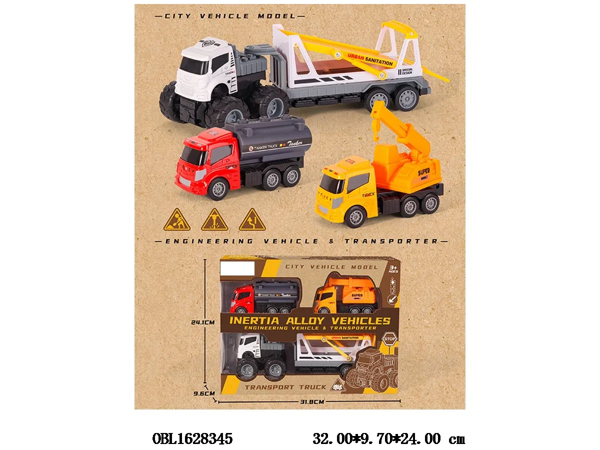 Home > Die-Cast Car > Dual inertia alloy container truck with 2 alloy inertia engineering vehicle sets