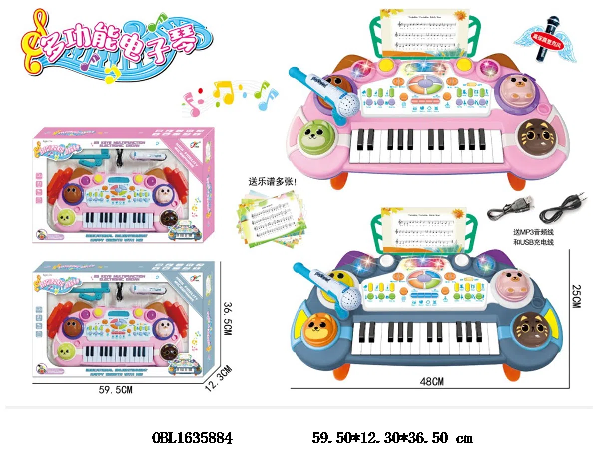 Home > Electronic Organ > Multi functional electronic keyboard set with lighting, music, USB charging cable, 3.7V lithium battery pack, 2-color mixed installation