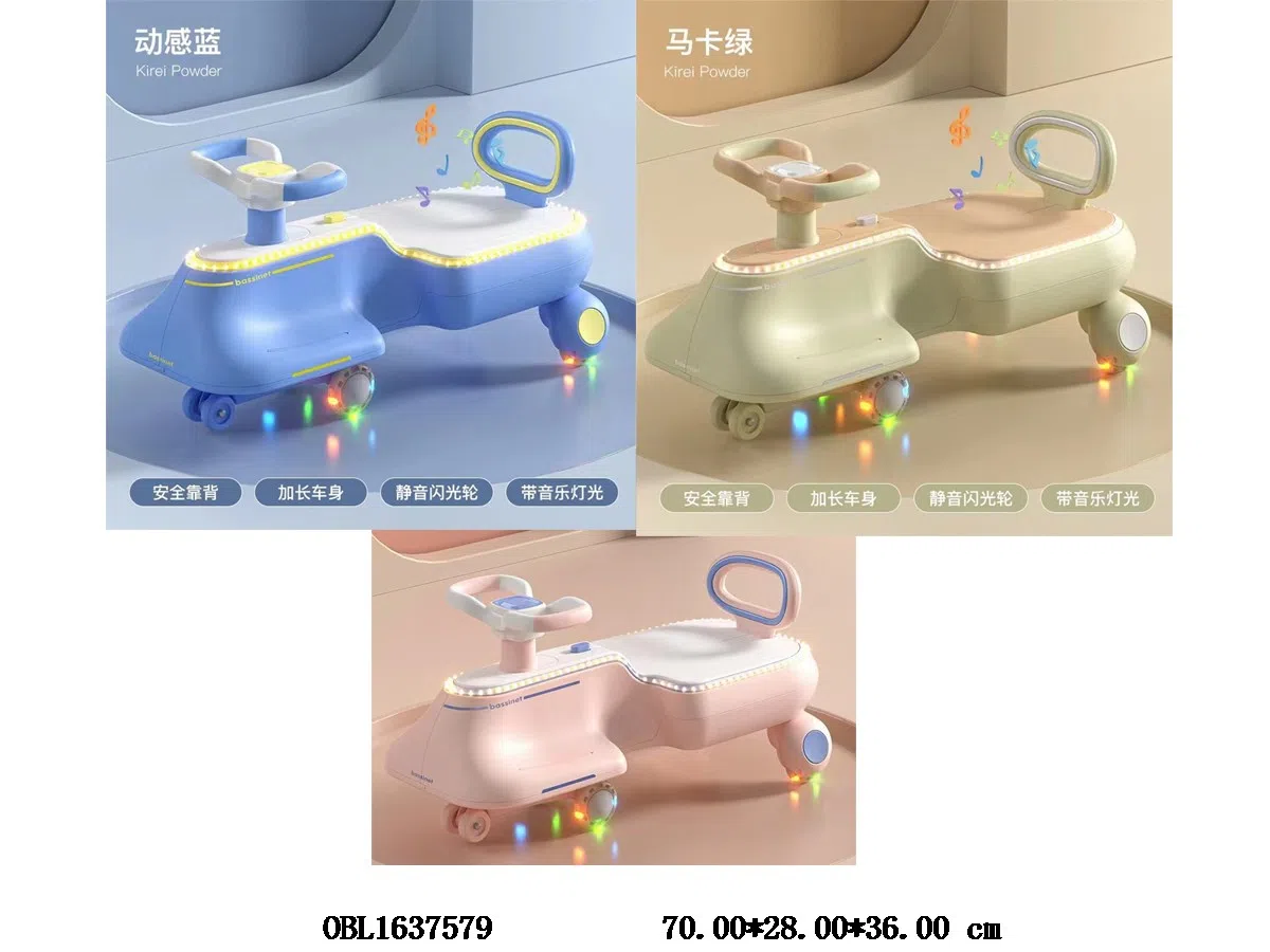 Sliding twisted children s stroller with light, music, flash wheel, 3 * AA, non electric OPP bag and cardboard box, 3-color mixed packaging