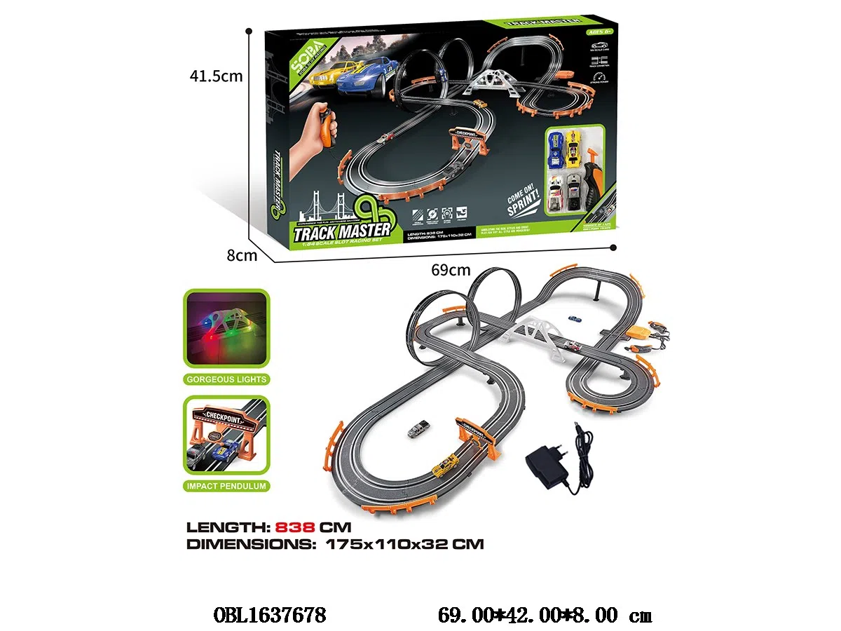 Home > Wire Controlled Railcar > 1: 64 electric racing track racing set with 9V adapter, 2-in-1 power supply, 2 track racing cars/wired remote control, 6 * AA, non battery included