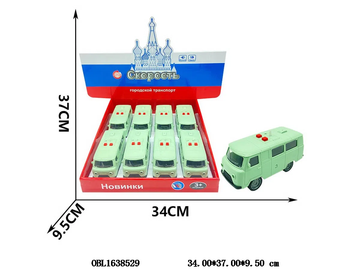 Russian inertia vehicle with light and sound 3 * AG13 battery pack, 8 pieces in one display box